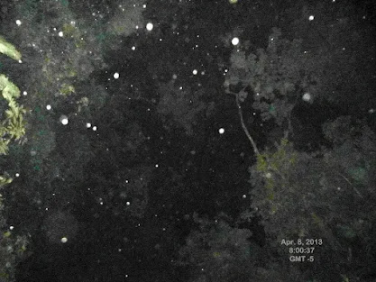 The strangest, however, is still ahead of us. The camera was not used until April 8. On that day, between 1 and 4 am, as many as ninety pictures were taken. On the camera, almost all of them looked completely black and there seemed to be nothing on them. However, when we managed to brighten them, it turned out that they contained shots of the night sky or bushes and trees. You can also see bright points that might seem like stars at first glance. However, they were probably drops of rain falling at that time.